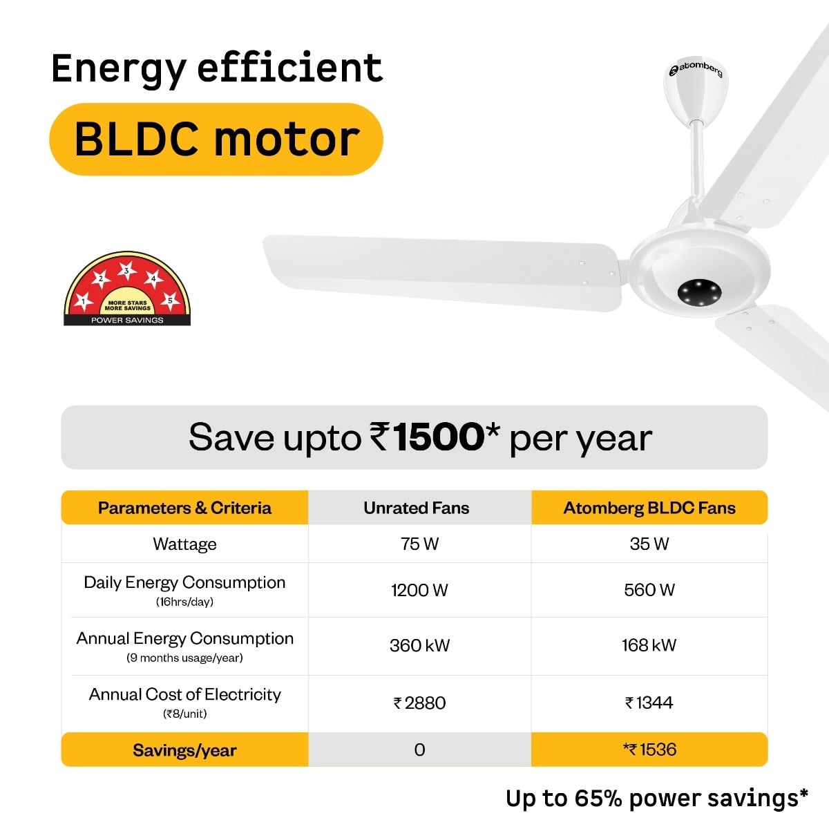 Advanced BLDC Motor Technology – Consumes up to 65% less electricity