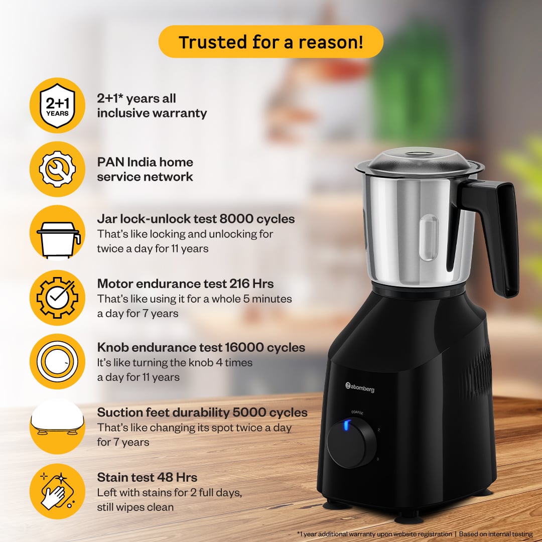 Built with advanced safety features, the mixer grinder offers reliable operation and protection during heavy use. The sturdy base design provides stability even during high-speed grinding.